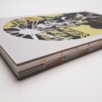 Das Drehbuch zu „Eldorado“, ein hochwertiger Kunstkatalog mit handgedruckten Originalgrafiken als Deckel. Die Rückseite ziert das Gedicht „Eldorado“ von Sophie Reyer. Aufwendig gestaltet mit offener Fadenheftung in gelb. Katalog- & Grafikdesign: Guy Schuler, Désirée Wickler