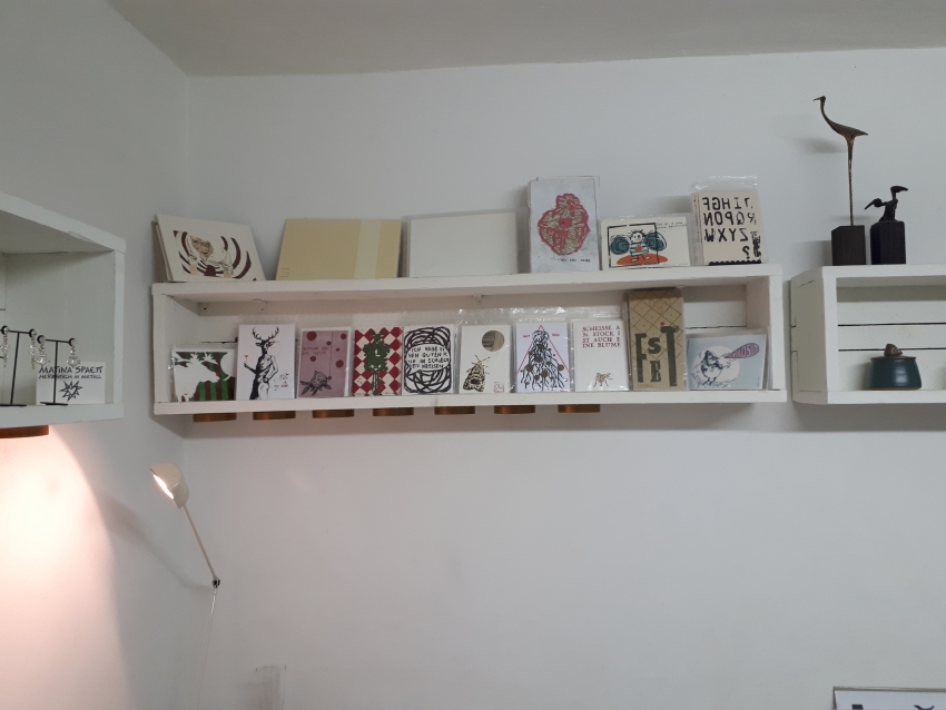 Eröffnung Atelier für Handdruck – Désirée Wickler, Linz am Rhein. Zu Gast: Eva Ademi Ebenfalls geöffnet: Keramikwerkstatt von Sabine Moshammer, Zeichenatelier und Konzert von Sarah Thompson.