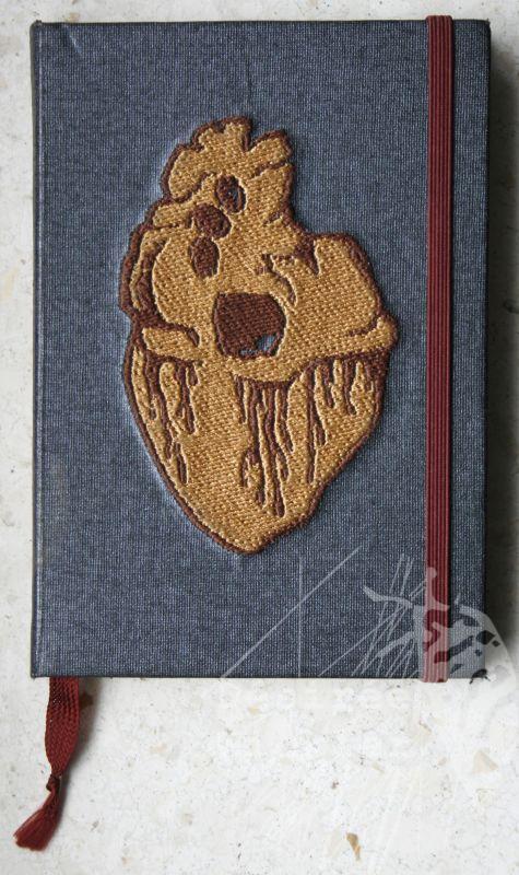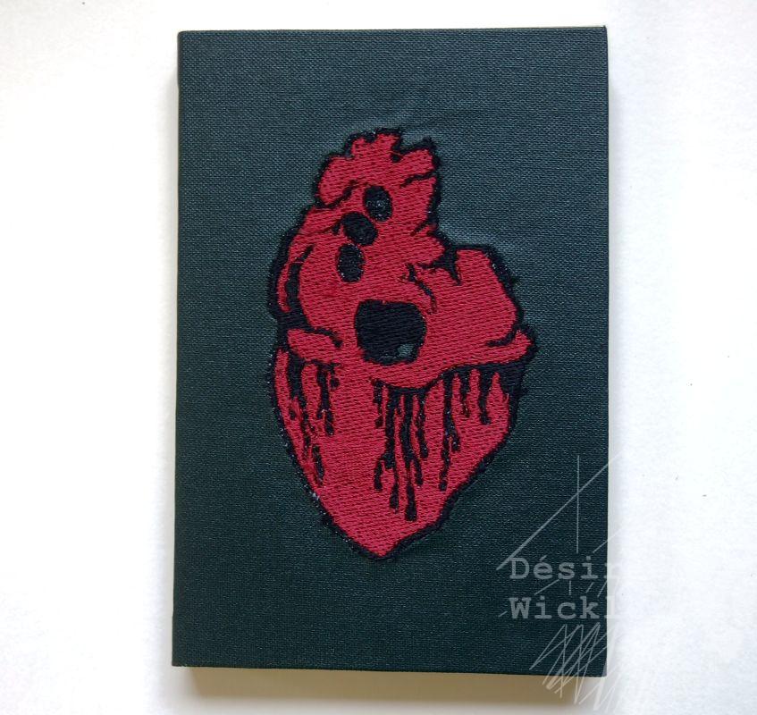 Ein handgebundenes extravagantes Designexemplar für Menschen die Herz zeigen wollen. Hochwertige Stickerei in rot und schwarz auf dunkelgrünem, leicht glänzendem Buchleinen.